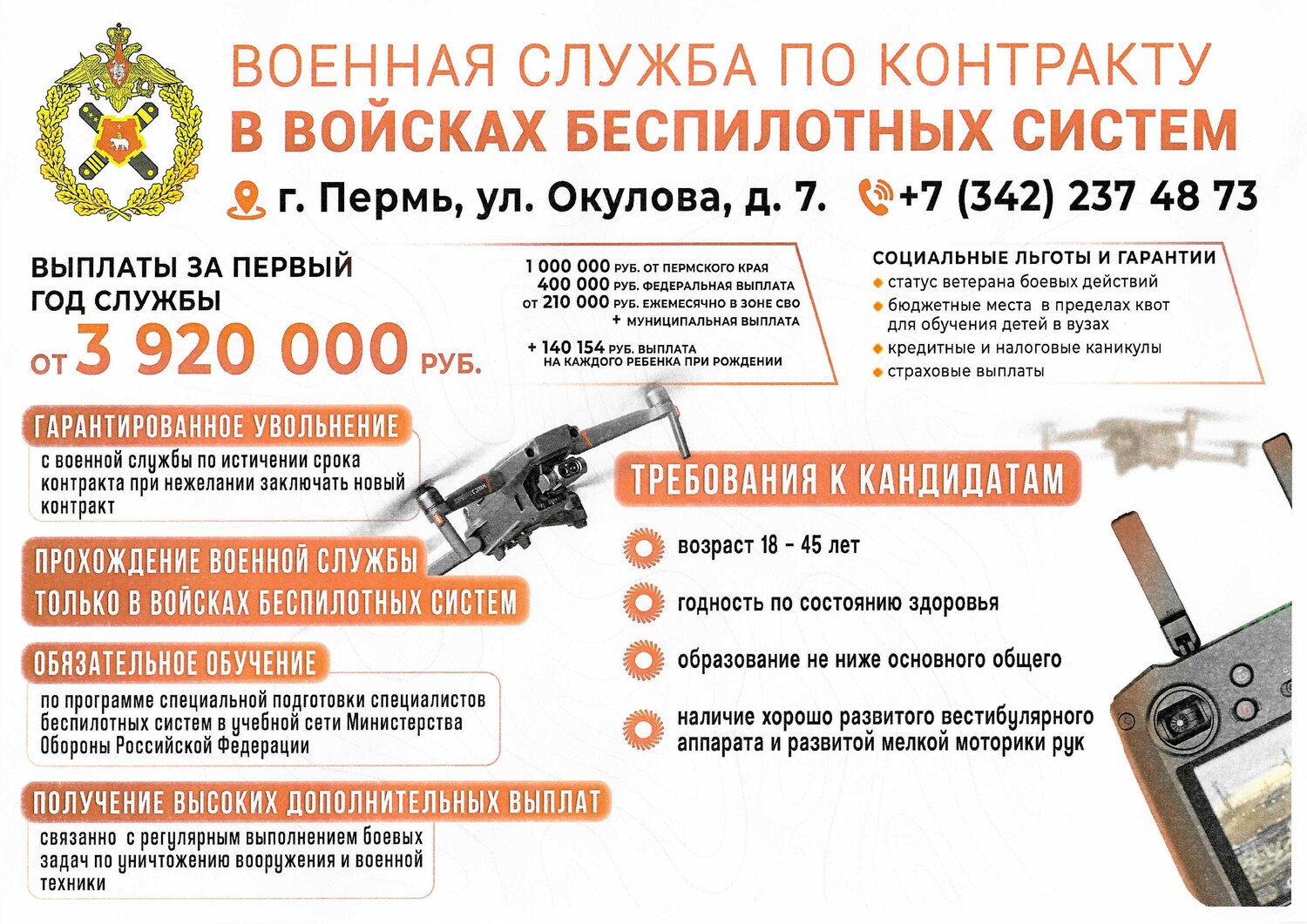 В среду, 21 января, в библиотеке главного корпуса состоялось встреча студентов старших курсов с представителями Министерства образования и науки Пермского края, военными офицерами, участниками СВО, а так же военкомом Соликамского Муниципального округа Колчиным А.В. На этой встрече затрагивались вопросы прохождения военной службы по контракту и поступление в высшие военные учебные заведения. Отдельно говорилось о прохождении службы в войсках беспилотных систем (обучение, требования к кандидатом, социальные и материальные льготы и гарантии). Учащиеся задавали интересующие вопросы, пробовали свои навыки на тренажёре, предназначенном для обучения операторов БПЛА.