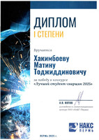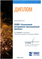 Лучшим в конкурсе второй год подряд стал студент ГБПОУ «Соликамский автодорожно-промышленный колледж»! Хакимбоев Матин (2 курс, группа СВ-24-22) набрал большее количество баллов в двух этапах конкурса и занял 1 место!
